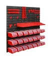 Das angebotene Kit besteht aus einer Wand mit Werkzeughaltern und 21 Aufbewahrungsbehältern.