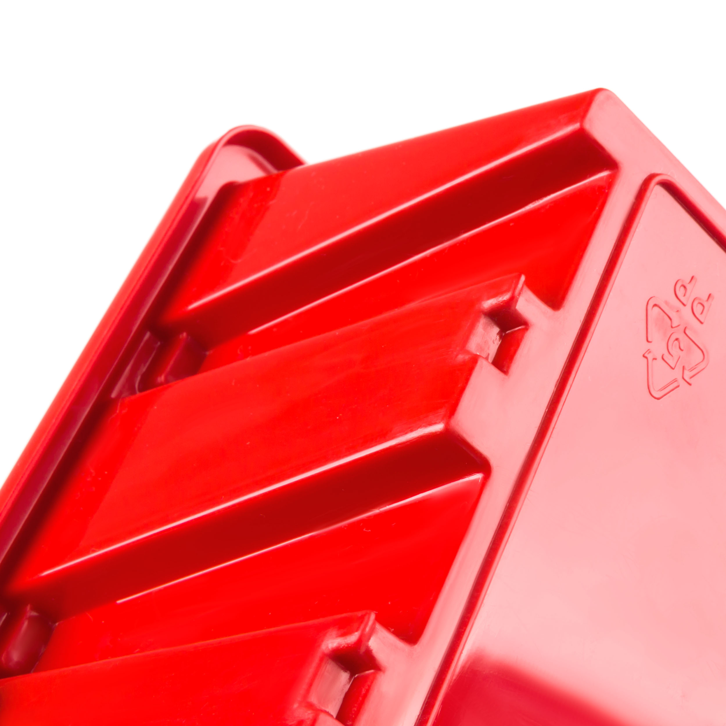 Ergonomiczny kształt pojemników umożliwia ich piętrowanie. Zastosowany stelaż umożliwia również układanie ich w stos, dzięki czemu możemy znacznie zaoszczędzić przestrzeń przy stanowisku, usprawnić dostęp do drobnych elementów. Przemyślana konstrukcja pozwala na wkładanie pojemników jeden w drugi. Wersja z pokrywą zapewnia pyłoszczelność oraz bezpieczeństwo podczas transportu. Pojemniki można wieszać na tablicach narzędziowych dostępnych w naszej ofercie.