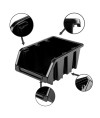 Ergonomiczny kształt pojemników umożliwia ich piętrowanie. Zastosowany stelaż umożliwia również układanie ich w stos, dzięki czemu możemy znacznie zaoszczędzić przestrzeń przy stanowisku, usprawnić dostęp do drobnych elementów. Przemyślana konstrukcja pozwala na wkładanie pojemników jeden w drugi. Wersja z pokrywą zapewnia pyłoszczelność oraz bezpieczeństwo podczas transportu. Pojemniki można wieszać na tablicach narzędziowych dostępnych w naszej ofercie.