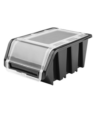 Ergonomiczny kształt pojemników umożliwia ich piętrowanie. Zastosowany stelaż umożliwia również układanie ich w stos, dzięki czemu możemy znacznie zaoszczędzić przestrzeń przy stanowisku, usprawnić dostęp do drobnych elementów. Przemyślana konstrukcja pozwala na wkładanie pojemników jeden w drugi. Wersja z pokrywą zapewnia pyłoszczelność oraz bezpieczeństwo podczas transportu. Pojemniki można wieszać na tablicach narzędziowych dostępnych w naszej ofercie.
