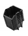 Ergonomiczny kształt pojemników umożliwia ich piętrowanie. Zastosowany stelaż umożliwia również układanie ich w stos, dzięki czemu możemy znacznie zaoszczędzić przestrzeń przy stanowisku, usprawnić dostęp do drobnych elementów. Przemyślana konstrukcja pozwala na wkładanie pojemników jeden w drugi. Wersja z pokrywą zapewnia pyłoszczelność oraz bezpieczeństwo podczas transportu. Pojemniki można wieszać na tablicach narzędziowych dostępnych w naszej ofercie.