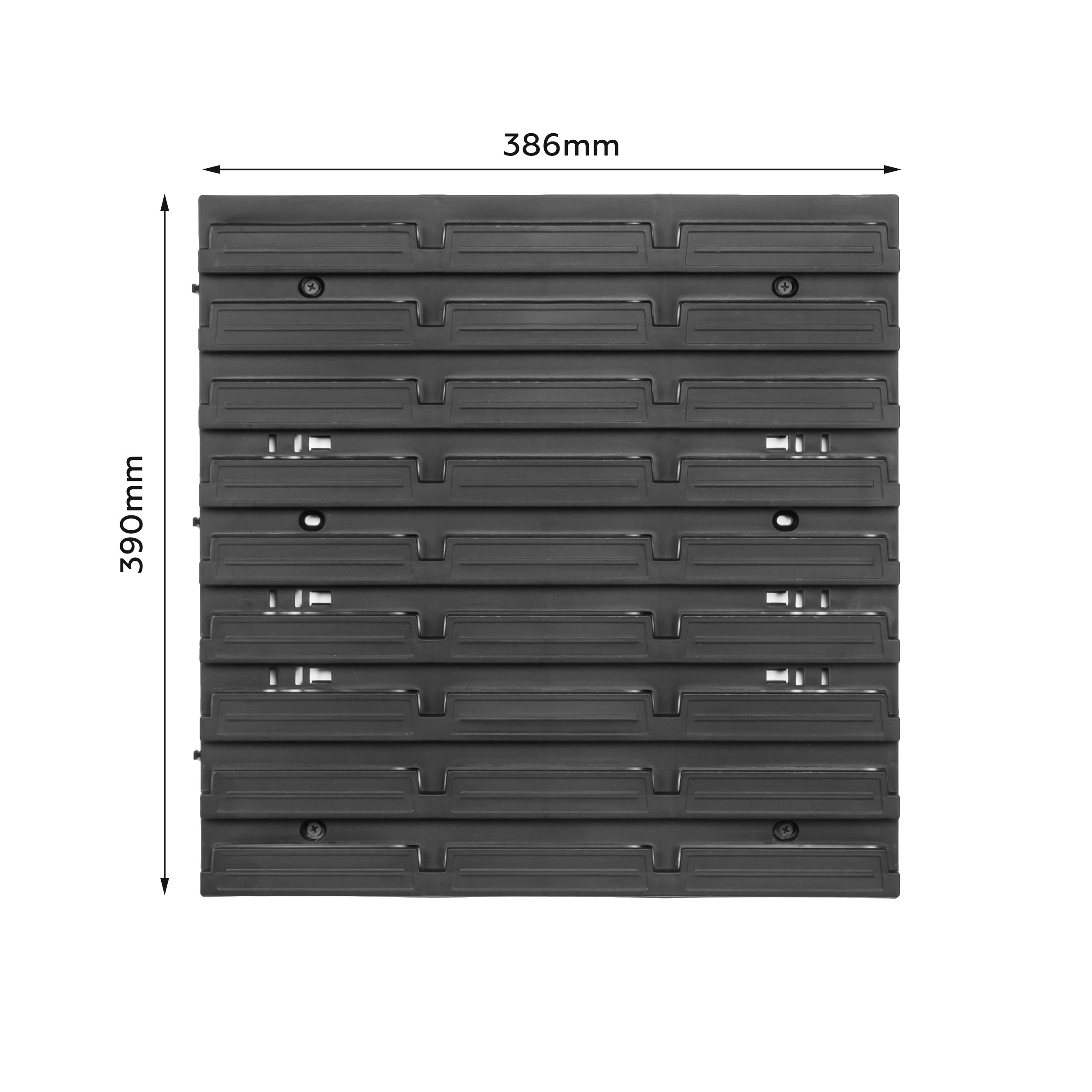 Ścianka warsztatowa wyposażona jest w wysokiej jakości pojemniki magazynowe wykonane z dbałością o detale. Stworzone z myślą o przechowywaniu sporej ilości różnych elementów zawierających się w wyposażenie warsztatu oraz innych drobiazgów, tj. gwoździe czy śrubki. Konstrukcja jest odporna na chemię oraz czynniki atmosferyczne. Ergonomiczny kształt pojemników umożliwia ich piętrowanie. Otwarty front zapewnia łatwy dostęp do zawartości pojemnika. Świetny dodatek stanowią wytrzymałe uchwyty i półki narzędziowe tj. młotek, wiertła, klucze, śrubokręt czy kombinerki. Dzięki uchwytom najważniejsze narzędzia będą zawsze pod ręką i zajmują znacznie mniej miejsca w warsztacie. Praktyczne oraz świetnie wyglądające rozwiązanie.