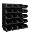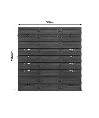 Ścianka warsztatowa wyposażona jest w wysokiej jakości pojemniki magazynowe wykonane z dbałością o detale. Stworzone z myślą o przechowywaniu sporej ilości różnych elementów zawierających się w wyposażenie warsztatu oraz innych drobiazgów, tj. gwoździe czy śrubki. Konstrukcja jest odporna na chemię oraz czynniki atmosferyczne. Ergonomiczny kształt pojemników umożliwia ich piętrowanie. Otwarty front zapewnia łatwy dostęp do zawartości pojemnika. Świetny dodatek stanowią wytrzymałe uchwyty i półki narzędziowe tj. młotek, wiertła, klucze, śrubokręt czy kombinerki. Dzięki uchwytom najważniejsze narzędzia będą zawsze pod ręką i zajmują znacznie mniej miejsca w warsztacie. Praktyczne oraz świetnie wyglądające rozwiązanie.