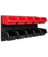 Ścianka warsztatowa wyposażona jest w wysokiej jakości pojemniki magazynowe wykonane z dbałością o detale. Stworzone z myślą o przechowywaniu sporej ilości różnych elementów zawierających się w wyposażenie warsztatu oraz innych drobiazgów, tj. gwoździe czy śrubki. Konstrukcja jest odporna na chemię oraz czynniki atmosferyczne. Ergonomiczny kształt pojemników umożliwia ich piętrowanie. Otwarty front zapewnia łatwy dostęp do zawartości pojemnika. Świetny dodatek stanowią wytrzymałe uchwyty i półki narzędziowe tj. młotek, wiertła, klucze, śrubokręt czy kombinerki. Dzięki uchwytom najważniejsze narzędzia będą zawsze pod ręką i zajmują znacznie mniej miejsca w warsztacie. Praktyczne oraz świetnie wyglądające rozwiązanie.