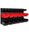 Ścianka warsztatowa wyposażona jest w wysokiej jakości pojemniki magazynowe wykonane z dbałością o detale. Stworzone z myślą o przechowywaniu sporej ilości różnych elementów zawierających się w wyposażenie warsztatu oraz innych drobiazgów, tj. gwoździe czy śrubki. Konstrukcja jest odporna na chemię oraz czynniki atmosferyczne. Ergonomiczny kształt pojemników umożliwia ich piętrowanie. Otwarty front zapewnia łatwy dostęp do zawartości pojemnika. Świetny dodatek stanowią wytrzymałe uchwyty i półki narzędziowe tj. młotek, wiertła, klucze, śrubokręt czy kombinerki. Dzięki uchwytom najważniejsze narzędzia będą zawsze pod ręką i zajmują znacznie mniej miejsca w warsztacie. Praktyczne oraz świetnie wyglądające rozwiązanie.