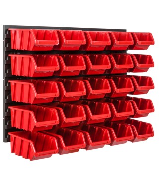 Ścianka warsztatowa wyposażona jest w wysokiej jakości pojemniki magazynowe wykonane z dbałością o detale. Stworzone z myślą o przechowywaniu sporej ilości różnych elementów zawierających się w wyposażenie warsztatu oraz innych drobiazgów, tj. gwoździe czy śrubki. Konstrukcja jest odporna na chemię oraz czynniki atmosferyczne. Ergonomiczny kształt pojemników umożliwia ich piętrowanie. Otwarty front zapewnia łatwy dostęp do zawartości pojemnika. Świetny dodatek stanowią wytrzymałe uchwyty i półki narzędziowe tj. młotek, wiertła, klucze, śrubokręt czy kombinerki. Dzięki uchwytom najważniejsze narzędzia będą zawsze pod ręką i zajmują znacznie mniej miejsca w warsztacie. Praktyczne oraz świetnie wyglądające rozwiązanie.