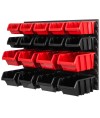 Ścianka warsztatowa wyposażona jest w wysokiej jakości pojemniki magazynowe wykonane z dbałością o detale. Stworzone z myślą o przechowywaniu sporej ilości różnych elementów zawierających się w wyposażenie warsztatu oraz innych drobiazgów, tj. gwoździe czy śrubki. Konstrukcja jest odporna na chemię oraz czynniki atmosferyczne. Ergonomiczny kształt pojemników umożliwia ich piętrowanie. Otwarty front zapewnia łatwy dostęp do zawartości pojemnika. Świetny dodatek stanowią wytrzymałe uchwyty i półki narzędziowe tj. młotek, wiertła, klucze, śrubokręt czy kombinerki. Dzięki uchwytom najważniejsze narzędzia będą zawsze pod ręką i zajmują znacznie mniej miejsca w warsztacie. Praktyczne oraz świetnie wyglądające rozwiązanie.