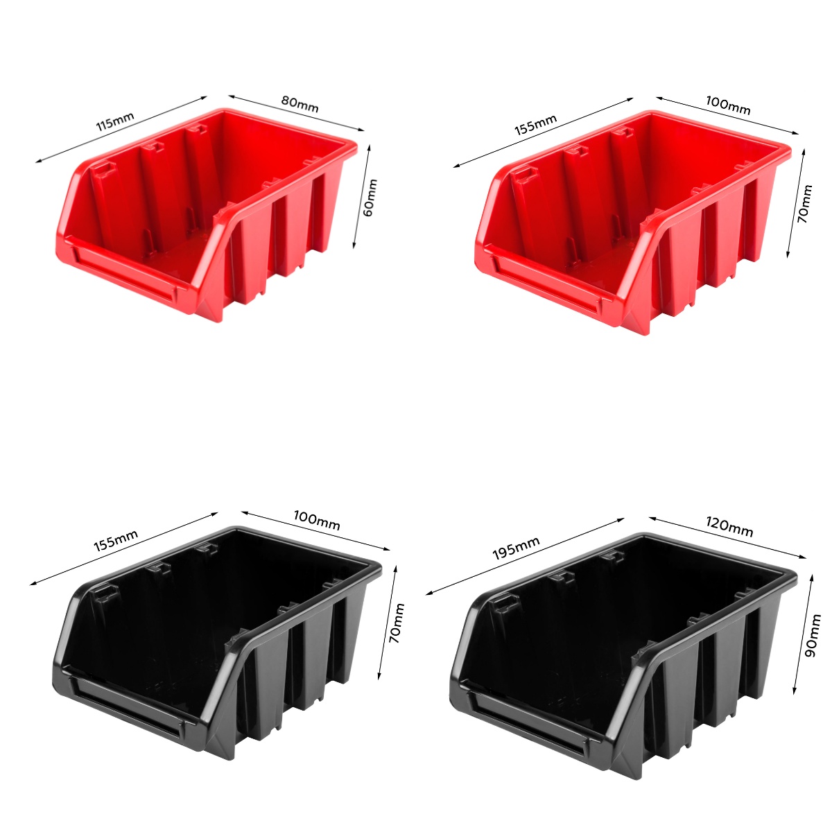 Dostępność w wielu rozmiarach przekłada się na szerokie spektrum zastosowania. Pojemniki magazynowe wchodzące w skład zestawu dostępne są w naszej ofercie, również osobno. Prezentowany zestaw zawiera pojemniki według specyfikacji: