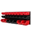 Ścianka warsztatowa wyposażona jest w wysokiej jakości pojemniki magazynowe wykonane z dbałością o detale. Stworzone z myślą o przechowywaniu sporej ilości różnych elementów zawierających się w wyposażenie warsztatu oraz innych drobiazgów, tj. gwoździe czy śrubki. Konstrukcja jest odporna na chemię oraz czynniki atmosferyczne. Ergonomiczny kształt pojemników umożliwia ich piętrowanie. Otwarty front zapewnia łatwy dostęp do zawartości pojemnika. Świetny dodatek stanowią wytrzymałe uchwyty i półki narzędziowe tj. młotek, wiertła, klucze, śrubokręt czy kombinerki. Dzięki uchwytom najważniejsze narzędzia będą zawsze pod ręką i zajmują znacznie mniej miejsca w warsztacie. Praktyczne oraz świetnie wyglądające rozwiązanie.