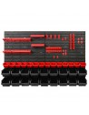 Ścianka warsztatowa wyposażona jest w wysokiej jakości pojemniki magazynowe wykonane z dbałością o detale. Stworzone z myślą o przechowywaniu sporej ilości różnych elementów zawierających się w wyposażenie warsztatu oraz innych drobiazgów, tj. gwoździe czy śrubki. Konstrukcja jest odporna na chemię oraz czynniki atmosferyczne. Ergonomiczny kształt pojemników umożliwia ich piętrowanie. Otwarty front zapewnia łatwy dostęp do zawartości pojemnika. Świetny dodatek stanowią wytrzymałe uchwyty i półki narzędziowe tj. młotek, wiertła, klucze, śrubokręt czy kombinerki. Dzięki uchwytom najważniejsze narzędzia będą zawsze pod ręką i zajmują znacznie mniej miejsca w warsztacie. Praktyczne oraz świetnie wyglądające rozwiązanie.