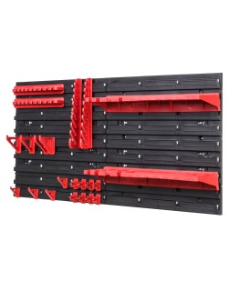 Jednym z najważniejszych elementów zestawu są uchwyty i półki narzędziowe, mocowane do tablicy w poziomie pozwalają na przejrzyste ułożenie wszystkich niezbędnych narzędzi. Niewykorzystana przestrzeń nad blatem roboczym to idealne miejsce na tablicę narzędziową, zapewniające dostęp na wyciągnięcie ręki. Prezentowany zestaw zawiera uchwyty i półki narzędziowe według specyfikacji: