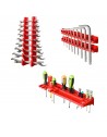 Jednym z najważniejszych elementów zestawu są uchwyty i półki narzędziowe, mocowane do tablicy w poziomie pozwalają na przejrzyste ułożenie wszystkich niezbędnych narzędzi. Niewykorzystana przestrzeń nad blatem roboczym to idealne miejsce na tablicę narzędziową, zapewniające dostęp na wyciągnięcie ręki. Prezentowany zestaw zawiera uchwyty i półki narzędziowe według specyfikacji: