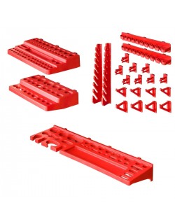 Cechą zestawu jest jego modułowa budowa, która umożliwia dowolny układ poszczególnych elementów w zależności od potrzeby. Konstrukcja ścianki nośnej posiada uniwersalny rant pozwalający na powieszenie pojemników i uchwytów w dowolnie wybranym miejscu i układzie. Przemyślana konstrukcja ścianki nośnej, w znaczący sposób ułatwia rozbudowę lub modyfikację naszej tablicy w przyszłości.
