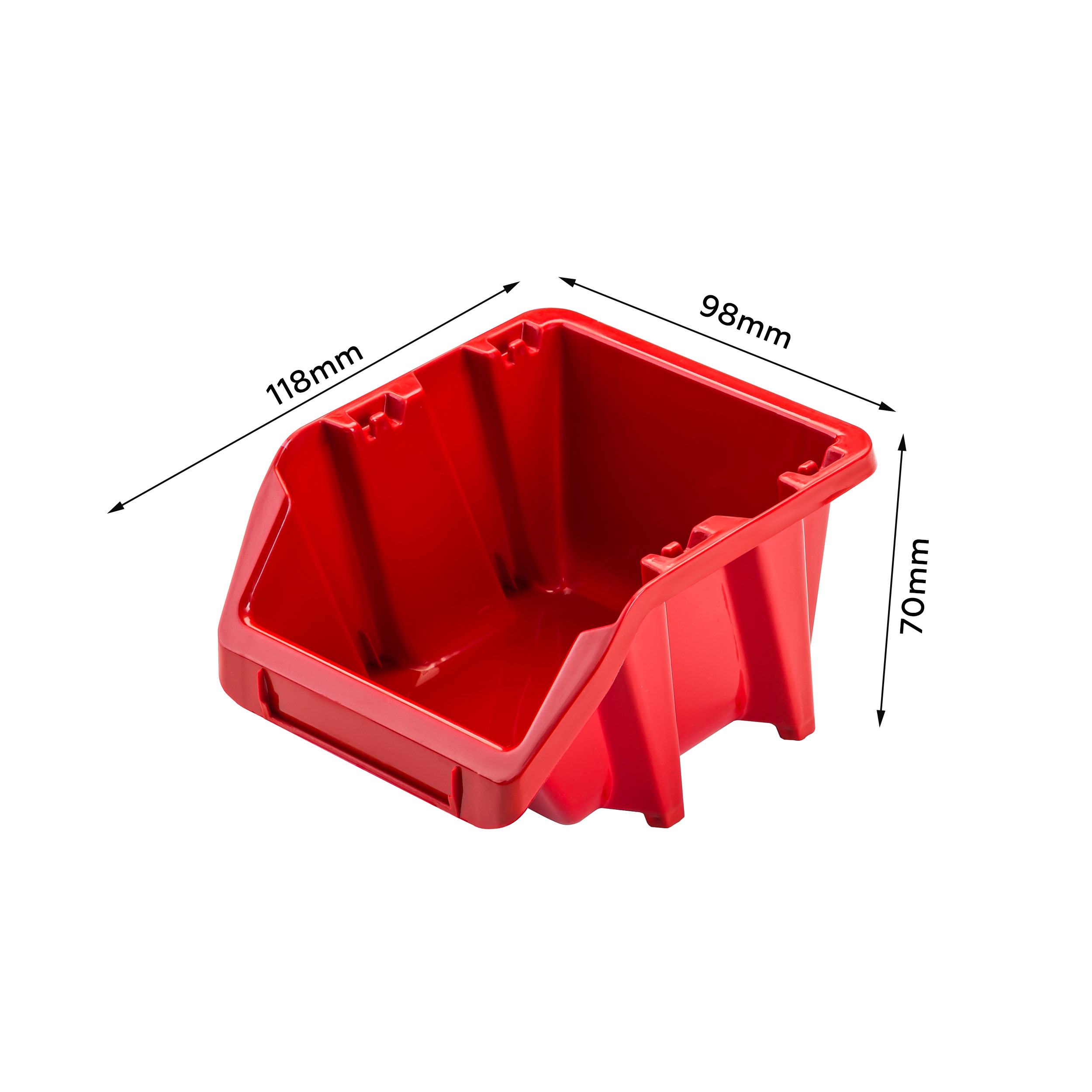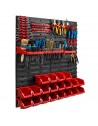 Ścianka warsztatowa wyposażona jest w wysokiej jakości pojemniki magazynowe wykonane z dbałością o detale. Stworzone z myślą o przechowywaniu sporej ilości różnych elementów zawierających się w wyposażenie warsztatu oraz innych drobiazgów, tj. gwoździe czy śrubki. Konstrukcja jest odporna na chemię oraz czynniki atmosferyczne. Ergonomiczny kształt pojemników umożliwia ich piętrowanie. Otwarty front zapewnia łatwy dostęp do zawartości pojemnika. Świetny dodatek stanowią wytrzymałe uchwyty i półki narzędziowe tj. młotek, wiertła, klucze, śrubokręt czy kombinerki. Dzięki uchwytom najważniejsze narzędzia będą zawsze pod ręką i zajmują znacznie mniej miejsca w warsztacie. Praktyczne oraz świetnie wyglądające rozwiązanie.