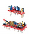 Jednym z najważniejszych elementów zestawu są uchwyty i półki narzędziowe, mocowane do tablicy w poziomie pozwalają na przejrzyste ułożenie wszystkich niezbędnych narzędzi. Niewykorzystana przestrzeń nad blatem roboczym to idealne miejsce na tablicę narzędziową, zapewniające dostęp na wyciągnięcie ręki. Prezentowany zestaw zawiera uchwyty i półki narzędziowe według specyfikacji: