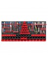 Ścianka warsztatowa wyposażona jest w wysokiej jakości pojemniki magazynowe wykonane z dbałością o detale. Stworzone z myślą o przechowywaniu sporej ilości różnych elementów zawierających się w wyposażenie warsztatu oraz innych drobiazgów, tj. gwoździe czy śrubki. Konstrukcja jest odporna na chemię oraz czynniki atmosferyczne. Ergonomiczny kształt pojemników umożliwia ich piętrowanie. Otwarty front zapewnia łatwy dostęp do zawartości pojemnika. Świetny dodatek stanowią wytrzymałe uchwyty i półki narzędziowe tj. młotek, wiertła, klucze, śrubokręt czy kombinerki. Dzięki uchwytom najważniejsze narzędzia będą zawsze pod ręką i zajmują znacznie mniej miejsca w warsztacie. Praktyczne oraz świetnie wyglądające rozwiązanie.